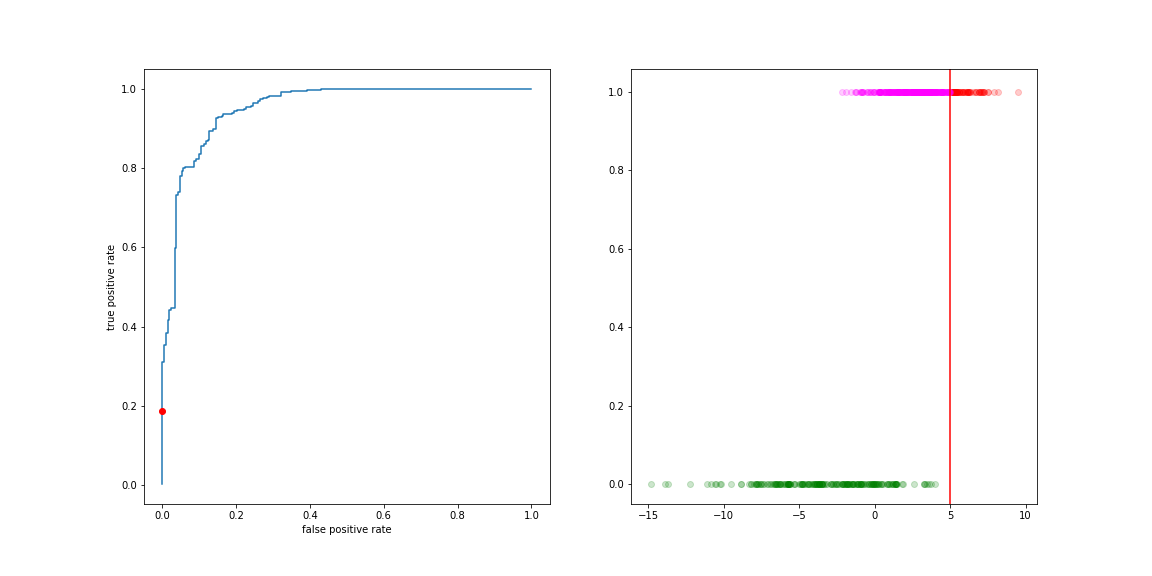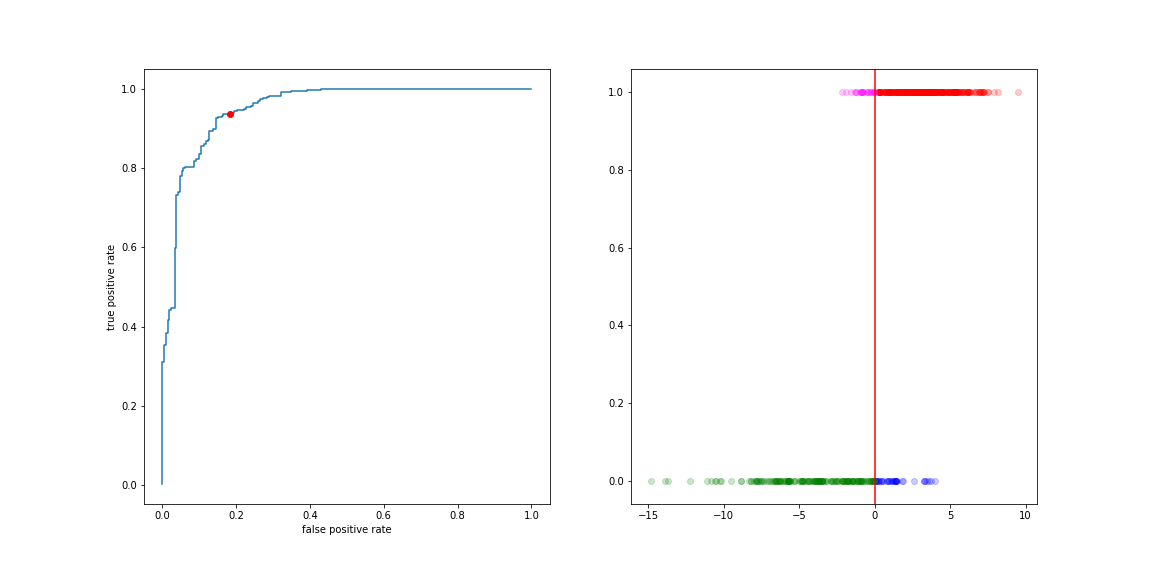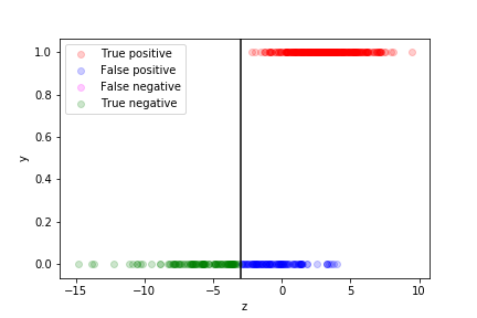 The different categories (TP, FP, TN, FN) can be visualised on this plot: