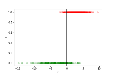 we can see how well the prediction works by plotting the true value as a function of $z$ for each data point in the training sample: