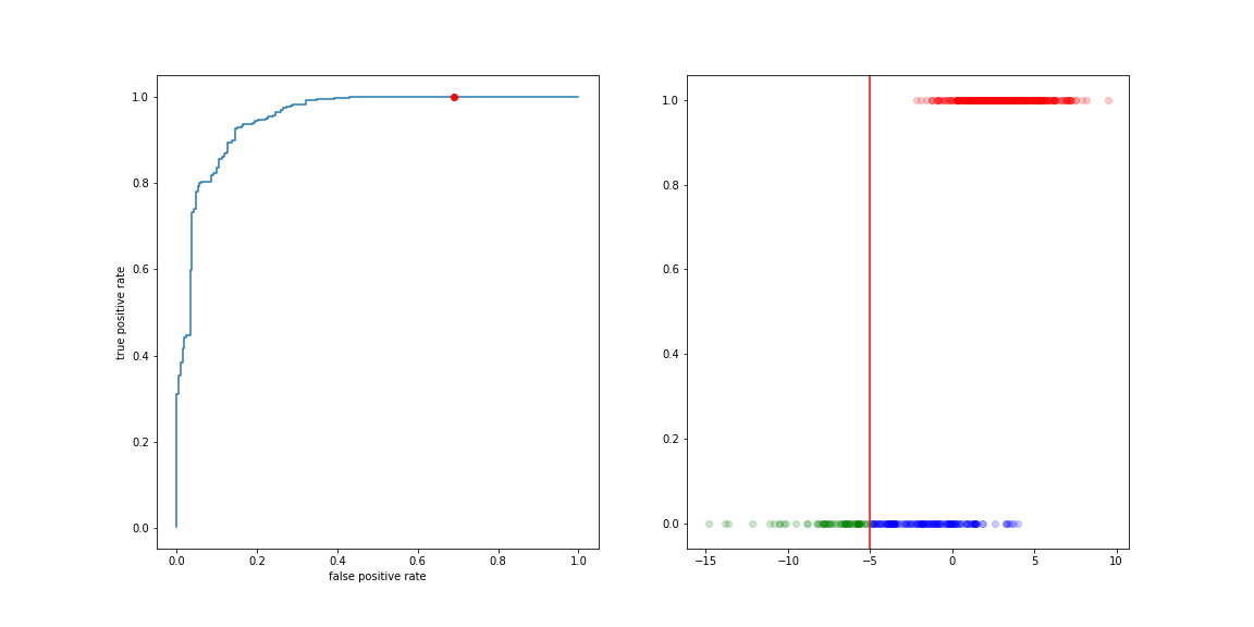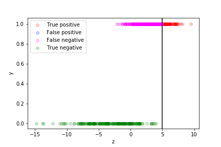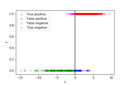 The different categories (TP, FP, TN, FN) can be visualised on this plot: