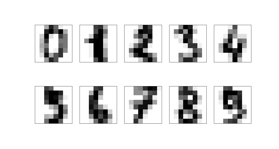 We consider a dataset of handwritten digits, compressed to an 8x8 image: