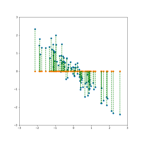 When we only consider the $k$ principal axis of a dataset we will loose some of the variance of the dataset.